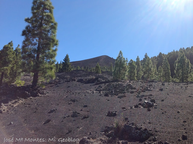 | Figura nº 37: Pinos canarios colonizando la ladera de un cono de piroclastos de una erupción reciente en la Isla de La Palma. |